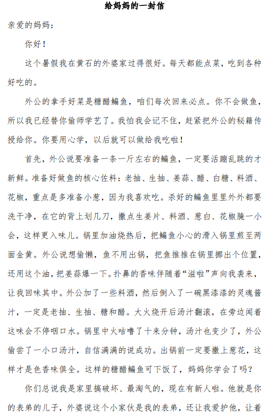 今天,“少年领读者·一封家书”编辑组收到了来自武汉市江夏区庙山第二小学许诗淇同学写给妈妈的一封信。