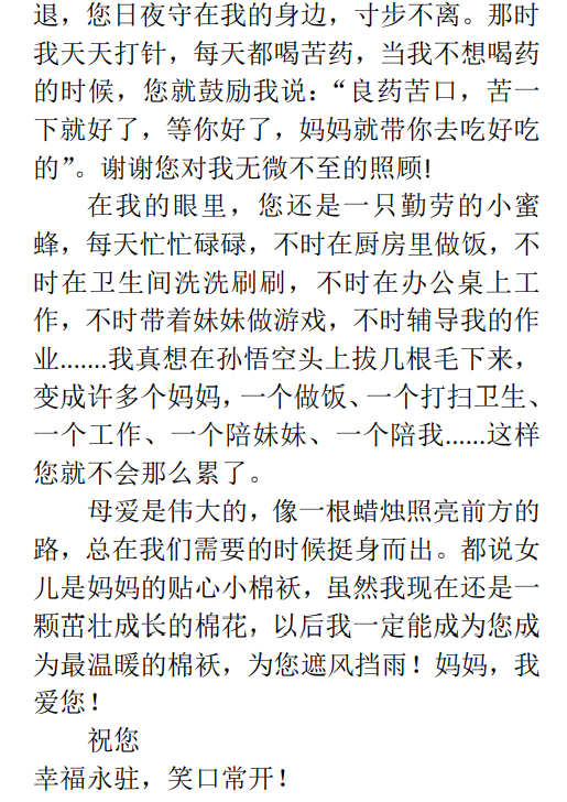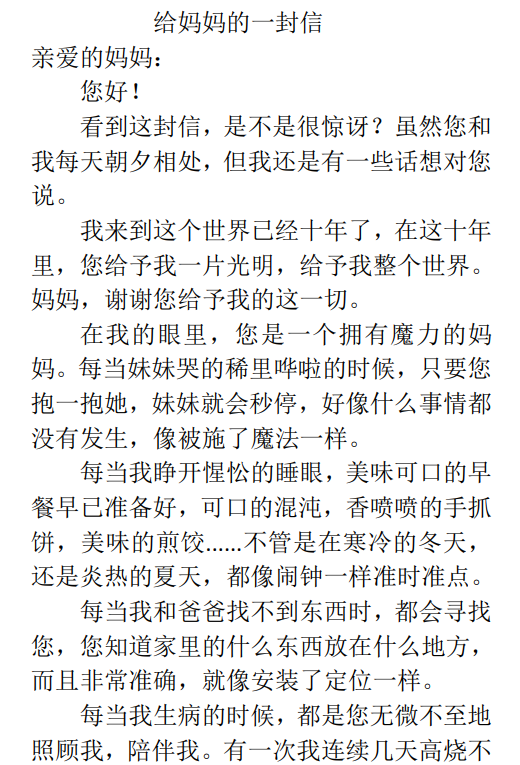 今天,“少年领读者·一封家书”编辑组收到了来自武汉市江夏区实验小学体育馆校区冯欣蕊同学写给妈妈的一封信。