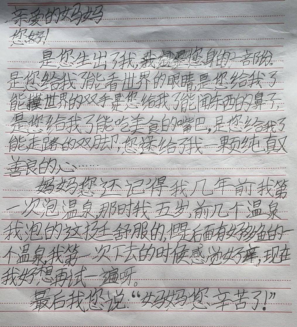 今天,“少年领读者·一封家书”编辑组收到了来自武汉市江夏区实验小学郑梓杰同学写给妈妈的一封信。