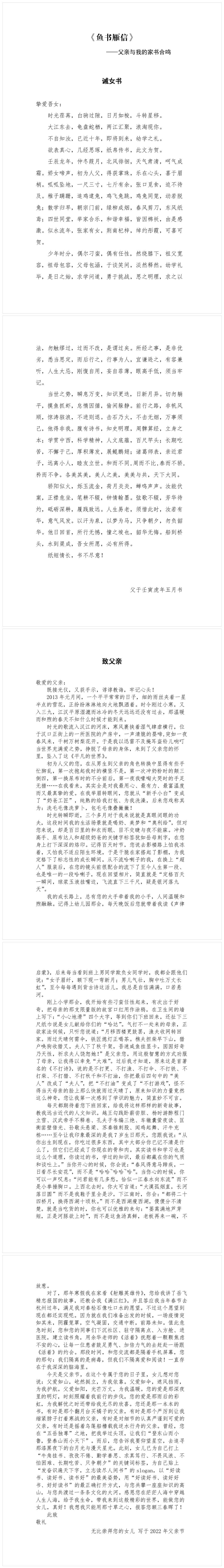 今天,“少年领读者·一封家书”编辑组收到了来自武汉市汉阳区钟家村小学张梓彤同学写给父亲的一封家书。