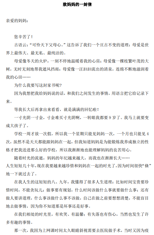 今天,“少年领读者·一封家书”编辑组收到了来自武汉市海淀外国语实验学校潘阮语薇同学写给妈妈的一封信。