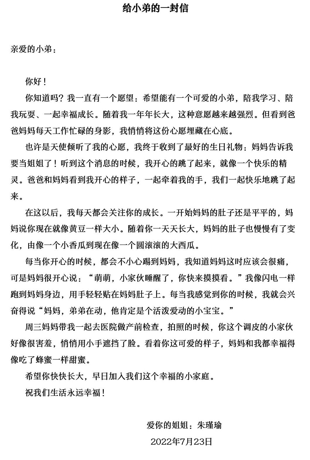 今天,“少年领读者·一封家书”编辑组收到了来自武汉市文化大道小学朱瑾瑜同学写给弟弟的一封信。