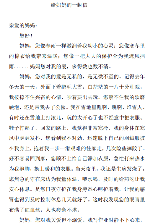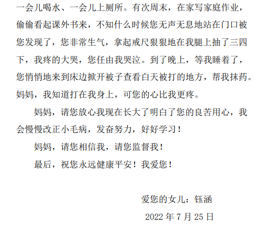 今天,“少年领读者·一封家书”编辑组收到了来自武汉市江夏区实验小学体育馆校区周钰涵同学写给妈妈的一封信。