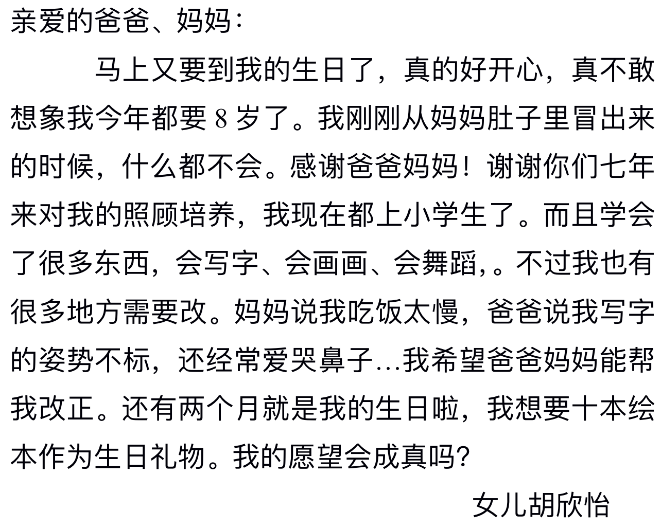 今天,“少年领读者·一封家书”编辑组收到了来自武汉市江夏实验小学体育馆校区张陟煊同学写给爸爸妈妈的一封信。