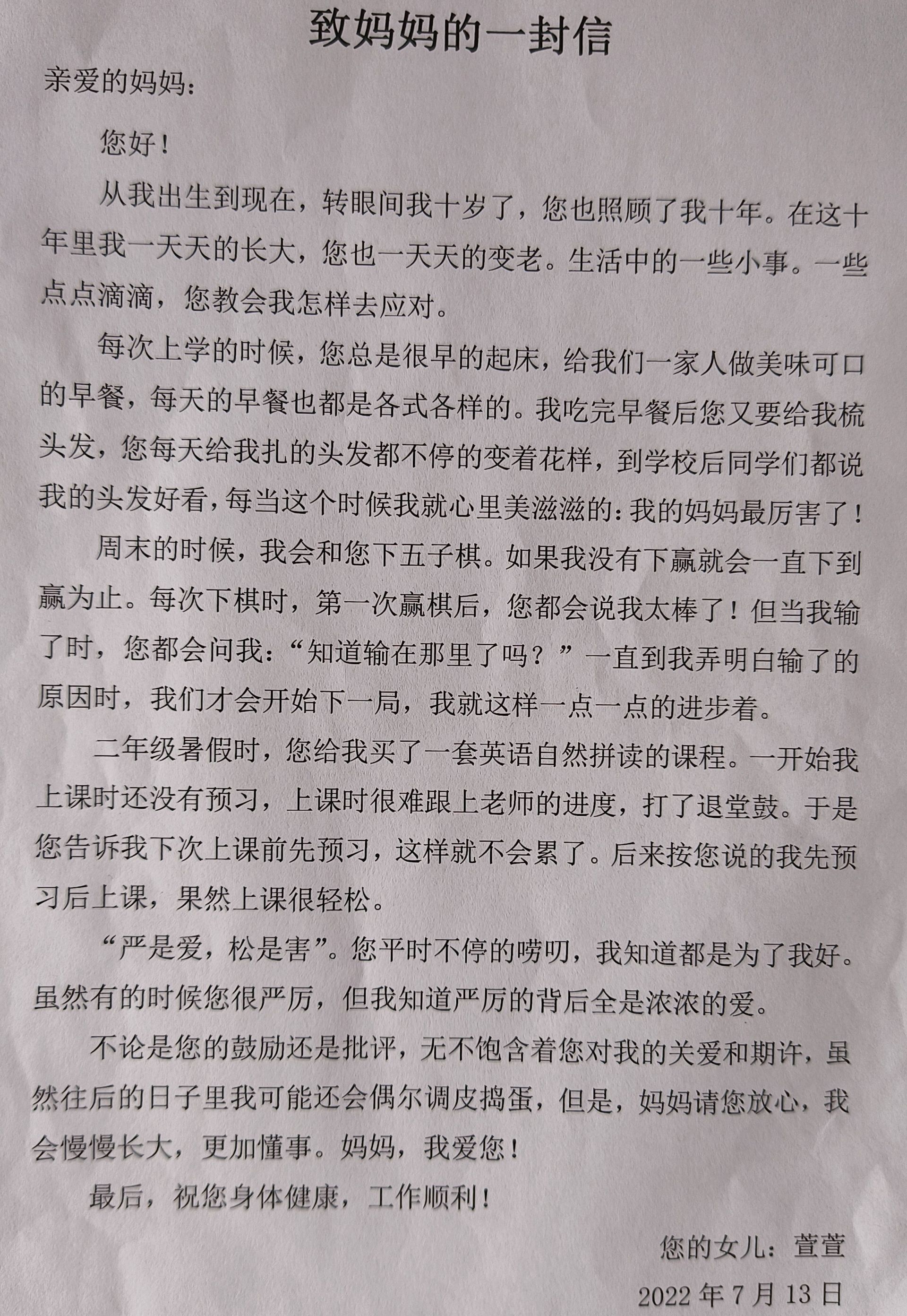给妈妈的一封信