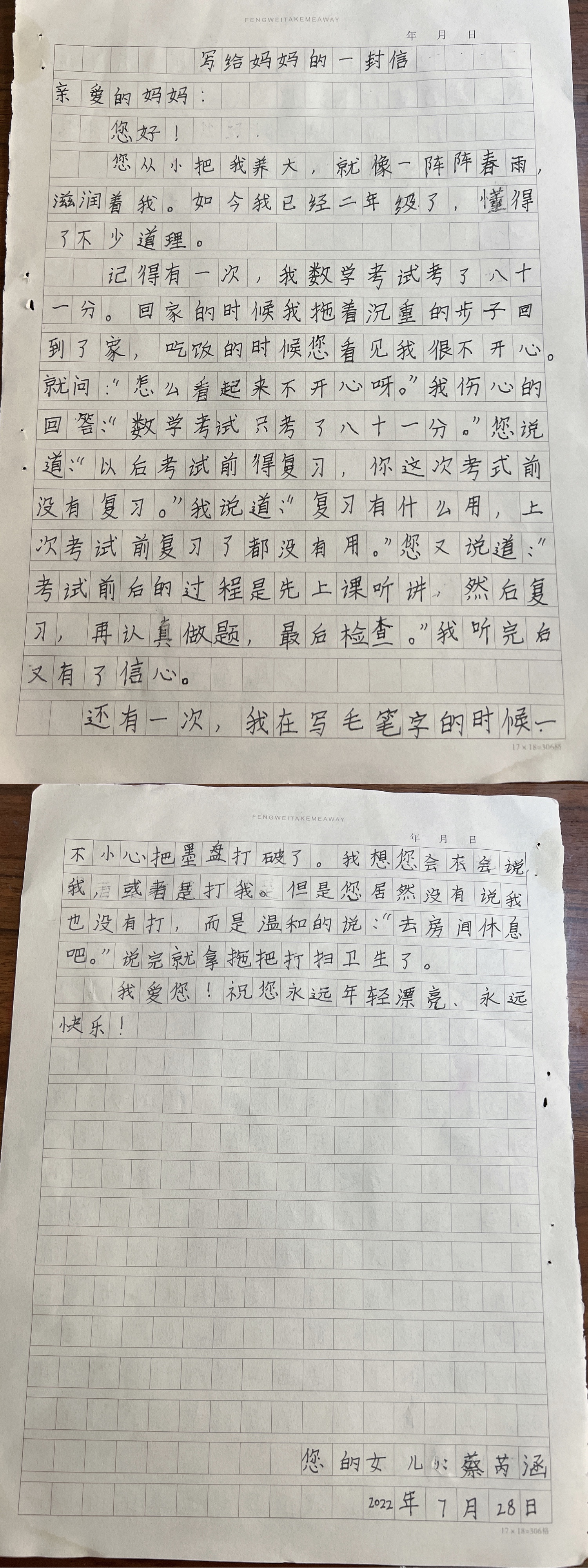 给妈妈的一封信