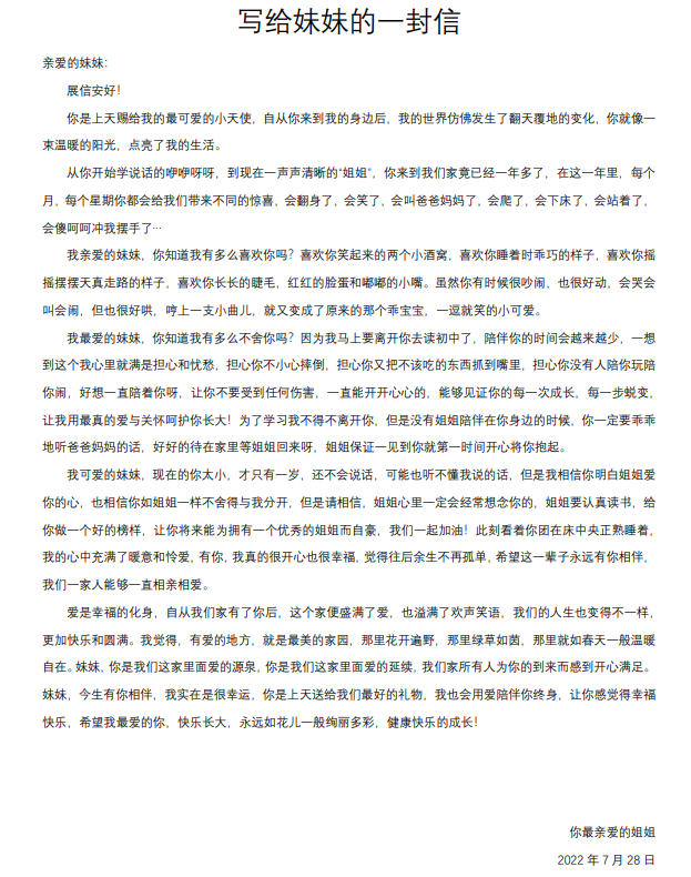 给妹妹的一封信