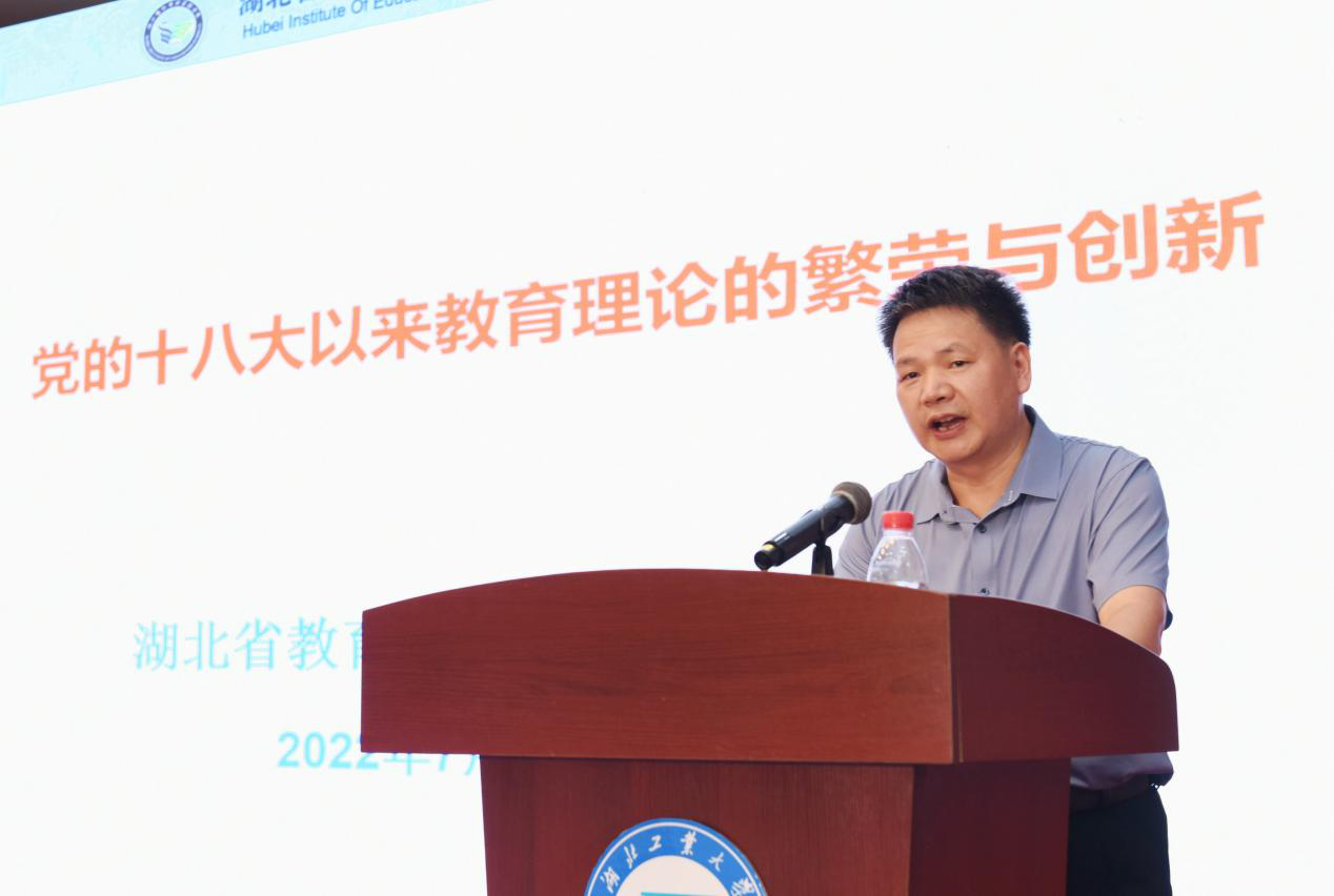 7月28日,2022年湖北省中等职业学校校长论坛在湖北工业大学召开,论坛主题为“宣传党的十八大以来我国教育理论研究成果,引领湖北中职学校高质量发展”。来自湖北省内101所中等职业学校的232位校领导(线下37人,线上195人)参与论坛,听取专题报告、分享发展经验,共谋湖北省中等职业教育高质量发展。