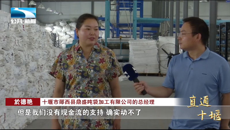 原来,郧西县鼎盛吨袋加工有限公司是於德艳和丈夫张绪忠2019年回乡创办的企业,主要生产集吨袋、集装袋、编织袋、牛皮纸袋等产品,营销网络覆盖多个省市,还出口到中亚的多个国家。然而因为疫情影响,原材料价格近年持续上涨,出口也受到影响,公司原计划4月份投产的二期新项目,面临资金短缺的问题。