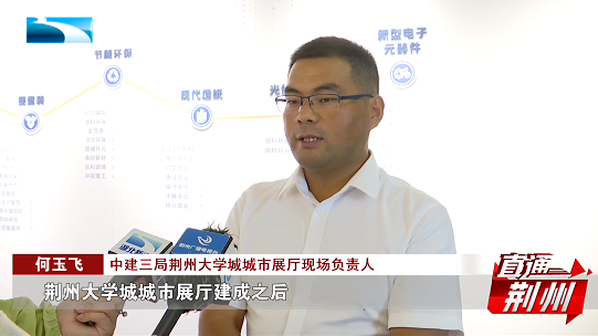 中建三局荆州大学城城市展厅现场负责人 何玉飞:“荆州大学城城市展厅建成之后,我们共分为四个展区。到目前为止,我们前三部分都已经具备展示形象,现在正在对4611产业体系进行进一步丰富。”