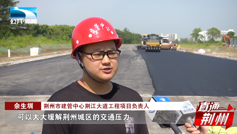 荆州市建管中心荆江大道工程项目负责人 佘生圳:“我们现在正在加班加点加快推进项目建设,预计在8月中旬完成道路沥青路面施工,整个项目预计在国庆节前达到初步通车条件。整段建设完成之后,可以大大缓解荆州城区的交通压力,加快大学城片区建设进度。”