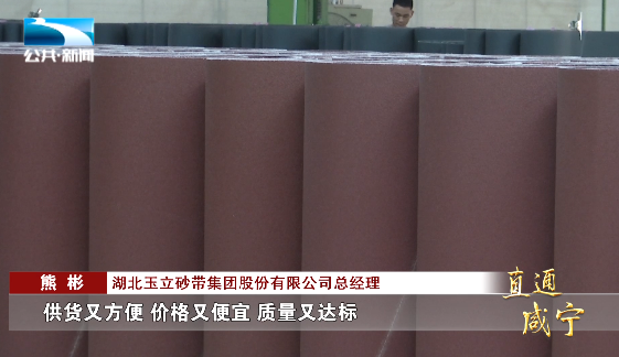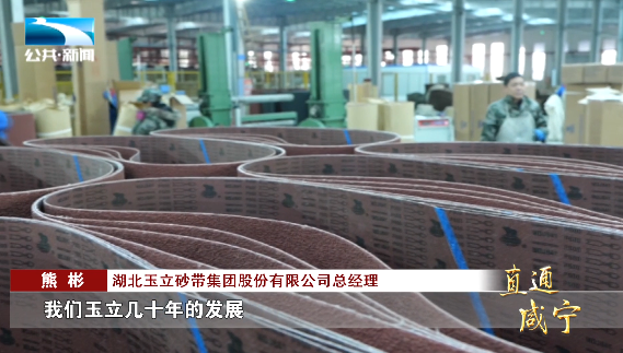 湖北玉立砂带集团股份有限公司总经理 熊彬:“国家、省、市、县对我们涂附磨具都非常支持,从源头我们原材料的生产,到后期产品的深加工。上游、中游、下游整个产业链达到100个亿,这是完全有信心的。”