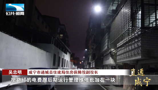 咸宁市通城县住建局住房保障股副股长 吴忠明:“电费的问题,我们县委县政府也做了一个部署。居民自筹一部分,现在我们小区有红色物业全覆盖,涵盖在物业费里面,把路灯的电费跟后期运行管理维修也加在一块,再有缺少的话由县委县政府来兜底。”