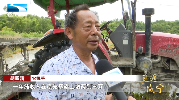 农机手 胡四清:“早稻已经收割了,现在打田了,一亩田能挣到二十来块钱,一年纯收入在原先基础上增两到三万。”