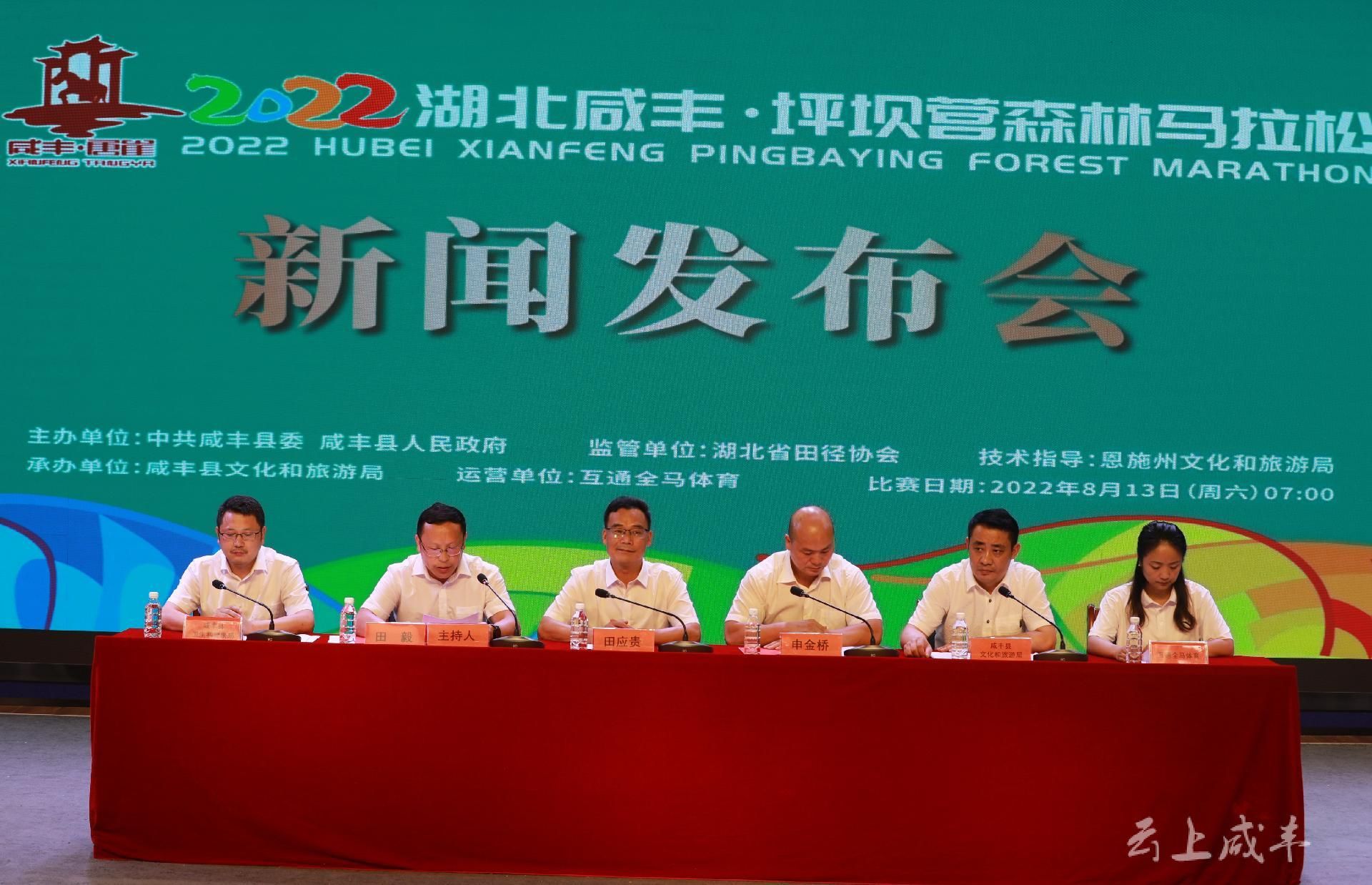 森爱咸丰,马上出发!8月1日,咸丰县举行2022湖北咸丰•坪坝营森林马拉松赛事新闻发布会。咸丰县委常委、宣传部部长田应贵,县政府副县长申金桥出席发布会。新华社、中新社、新华网、中国日报网、中国网、湖北日报、湖北广播电视台、新浪湖北、恩施日报、恩施电视台、咸丰县融媒体中心等十多家媒体参加。