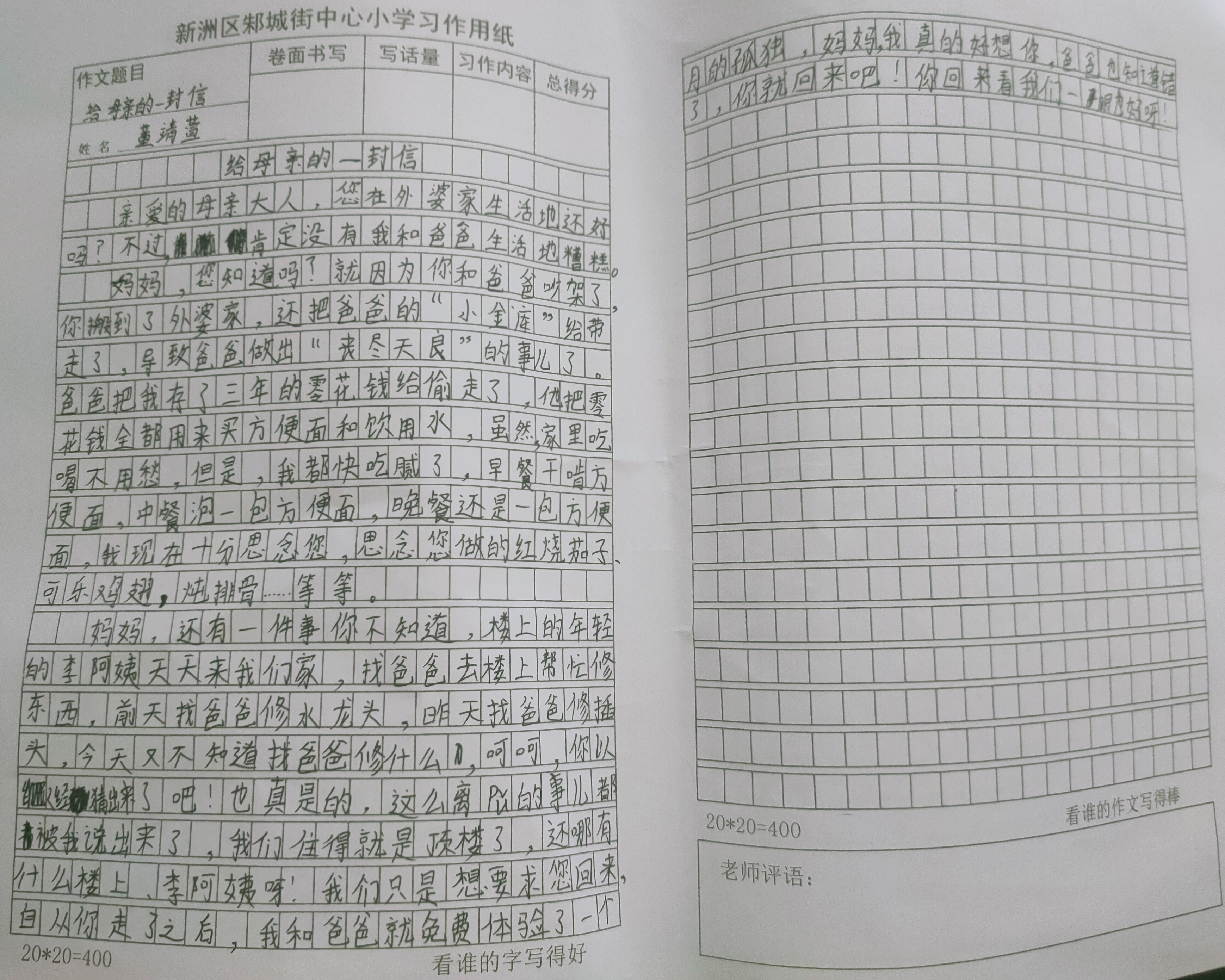 今天,“少年领读者·一封家书”编辑组收到了来自武汉市新洲区邾城街中心小学董靖萱同学的一封信。