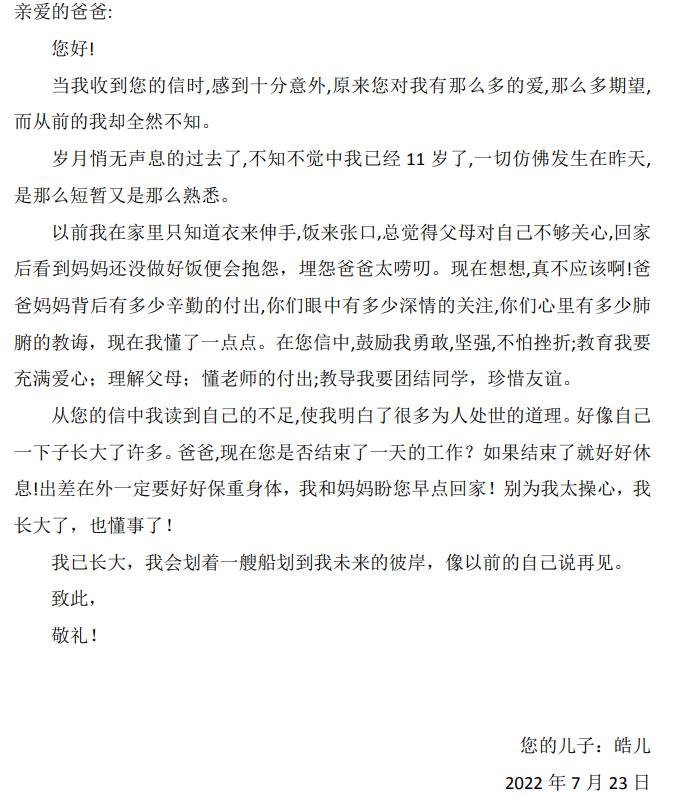 给爸爸的一封信