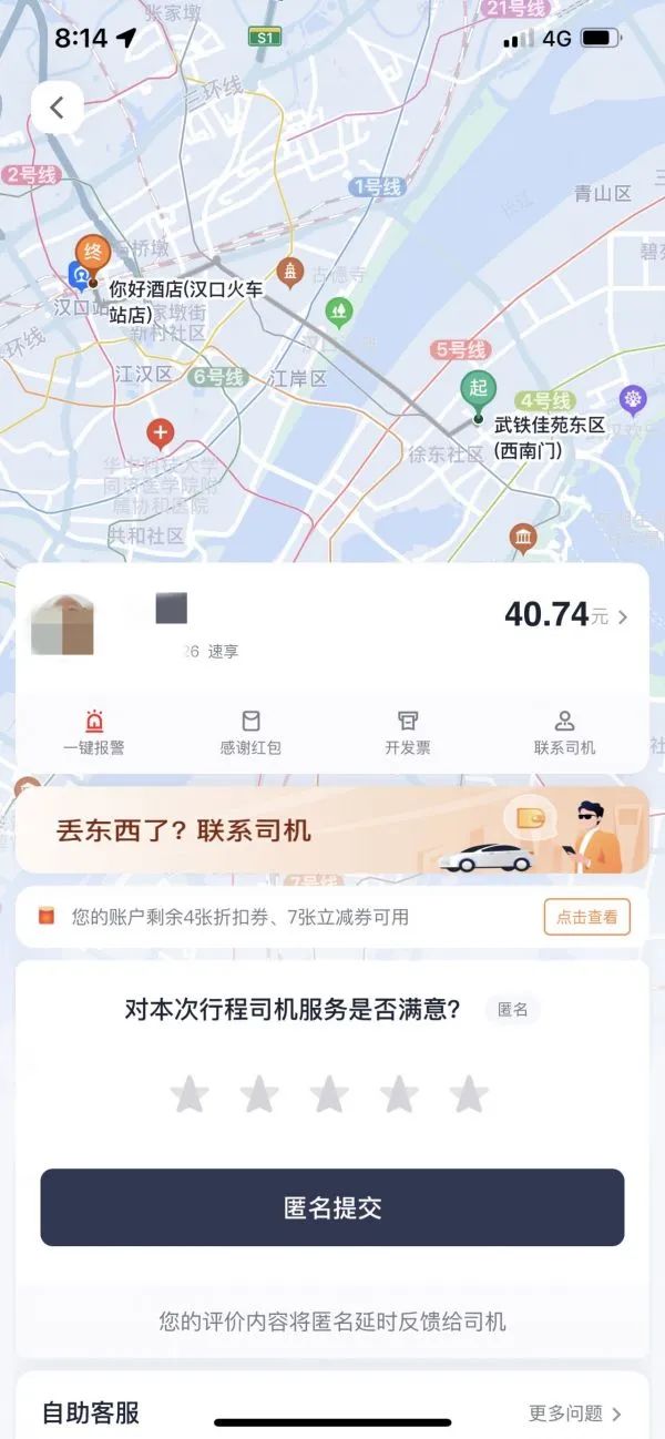 吴女士介绍,1日早上6:45左右,她通过“T3出行”叫车上班,选定的路线为“杨园南路武铁佳苑到汉口火车站你好酒店”。叫车页面显示了三种车型的价格,预估价格均不超过30元。吴女士随即下单,于6:50左右上车,7:05左右到达目的地后下车。到单位后付款时,才发现页面显示的实际价格为40.74元。