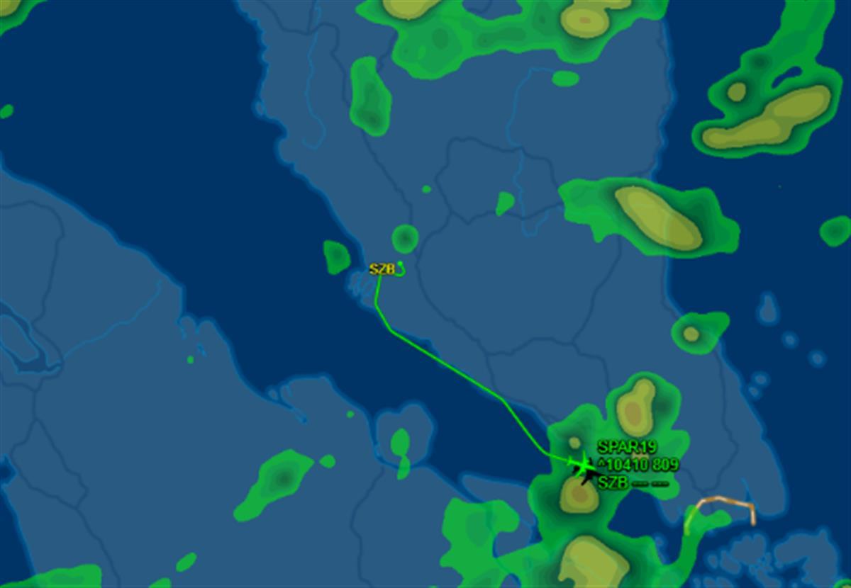 SPAR19正离开吉隆坡,往东南方向飞行。