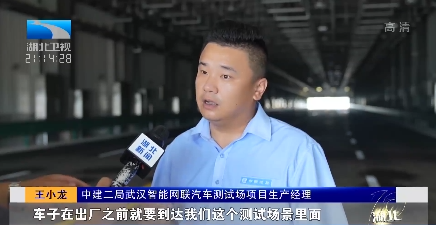中建二局武汉智能网联汽车测试场项目生产经理王小龙:“车子在出厂之前就要达到我们这个测试场景里面,模拟遇到这种风雨雷电的时候,自动检测这些系统无法达到检测这些内容的话,那这个车子是判定不合格的。”