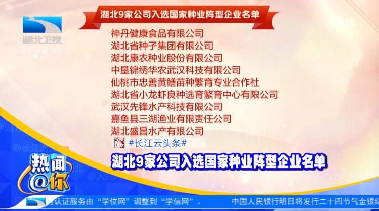 农业农村部近日发布国家种业阵型企业名单,湖北神丹健康食品有限公司、湖北省种子集团有限公司等9家企业入选,国家将引导资源、技术等要素向企业集聚。