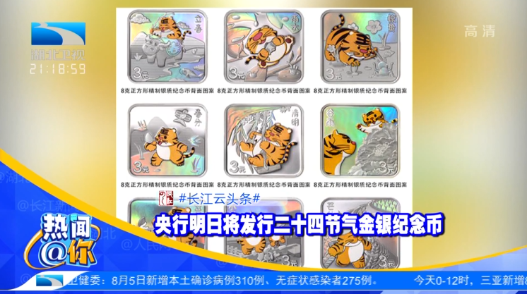 人民银行将于明日(8月7日)发行二十四节气金银纪念币一套,共28枚,正面图案均为装饰圭表造型,衬以桃花、麦穗等组合设计,背面图案则各有特色。
