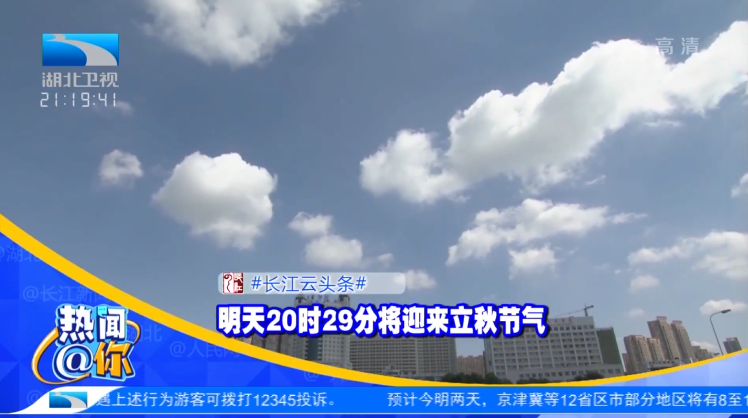 明天(8月7日)20时29分将迎来立秋节气,由于盛夏余热未消,立秋前后湖北多地仍处于炎热之中,气象资料表明,9月中下旬天气才能真正凉爽起来。