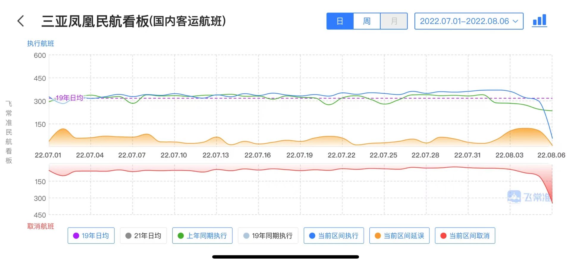 据飞常准App显示,8月7日,三亚凤凰机场所有出港航班已全部取消(含提前取消)。