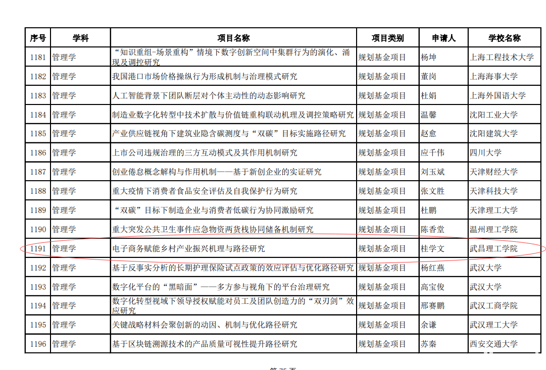 近日,教育部网站公示了2022年度教育部人文社会科学研究一般项目的评审结果。武昌理工学院商学院桂学文教授主持的课题《电子商务赋能乡村产业振兴机理与路径研究》成功立项规划基金项目。