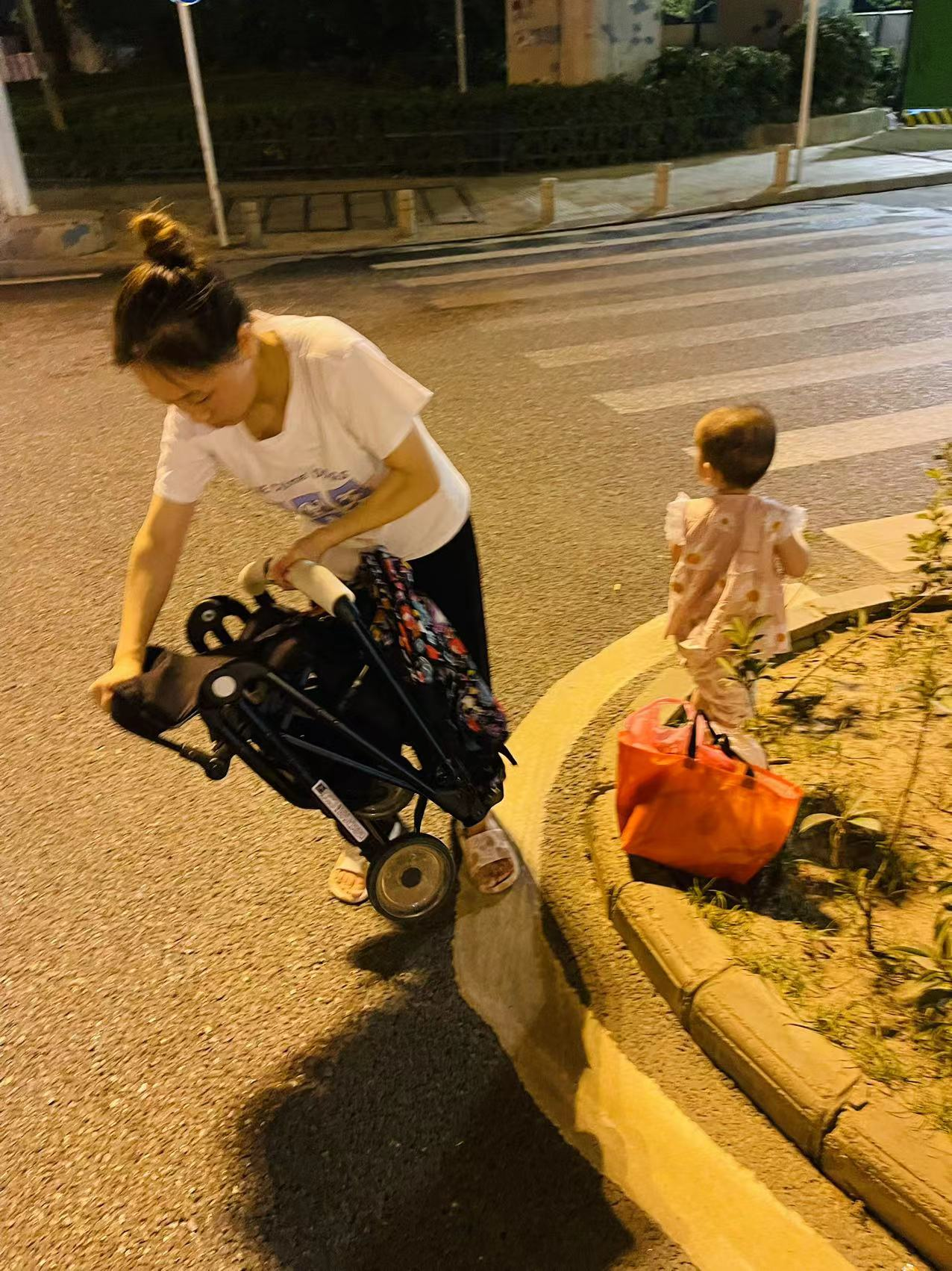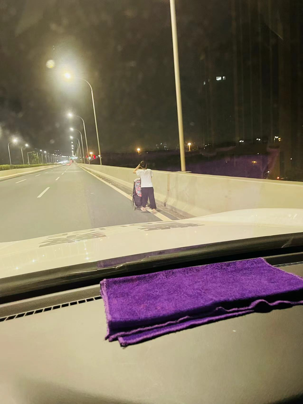 8月7日夜间10点,白沙洲交警接报警称,三环线米粮立交路段,一位妈妈推着婴儿车走在三环线高架桥慢车道内。