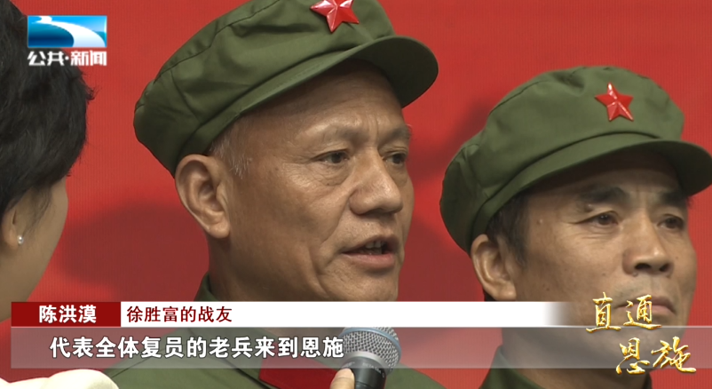 徐胜富战友 陈洪漠:“连长同志,奇穷河英雄连6名官兵,代表全体复员的老兵来到恩施,祝您身体健康、家庭幸福。敬礼!”