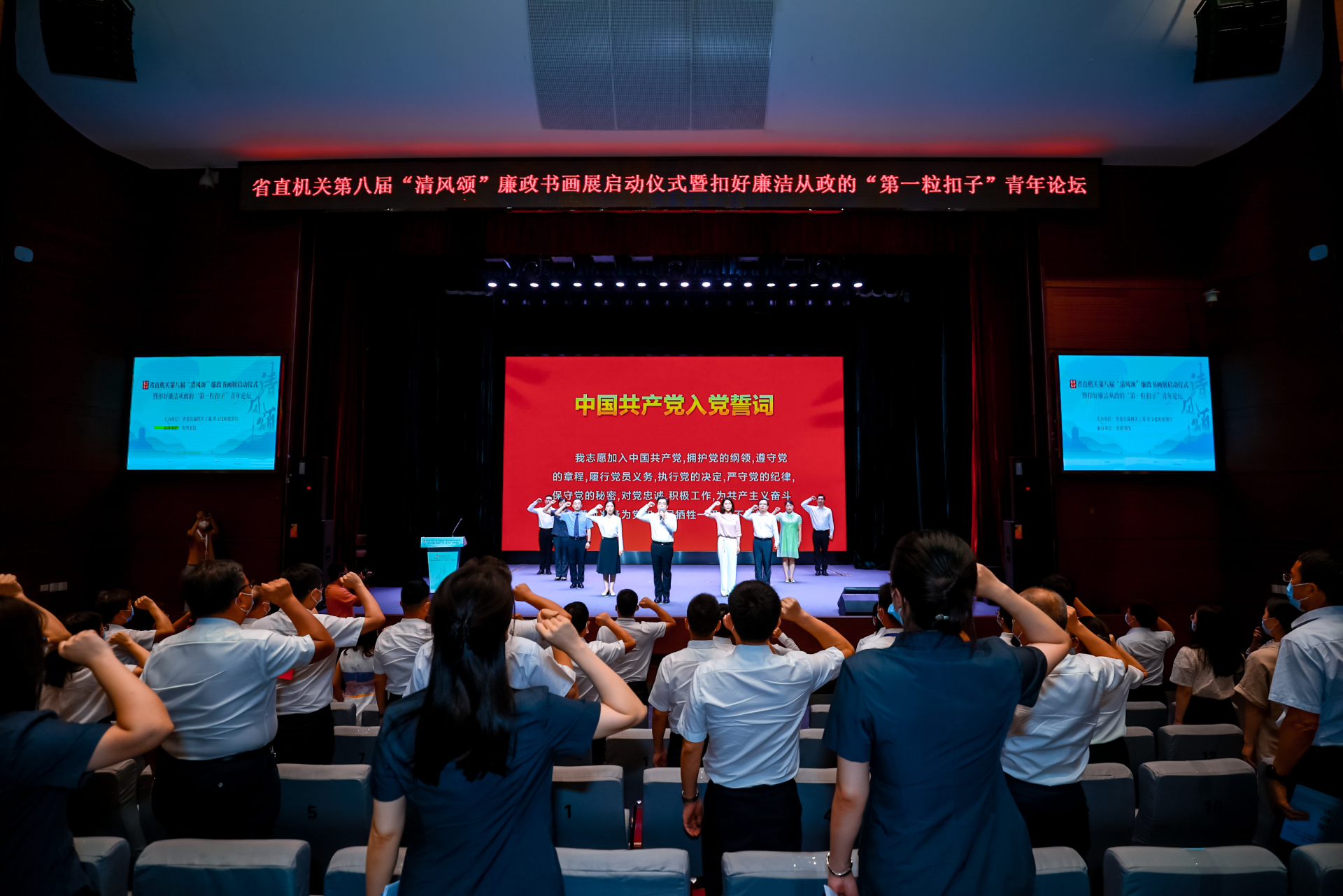 该活动由省委直属机关工委、省文化和旅游厅主办。省委直属机关工委相关负责人介绍,将“清风颂”廉政书画展启动仪式与青年论坛活动结合起来,组织省直机关年轻党员干部观展、讨论,目的是通过不同形式、不同层面、不同角度,大力弘扬新时代廉洁文化,推进清廉机关建设走深走实,凝聚起建功先行区、喜迎二十大的磅礴力量。