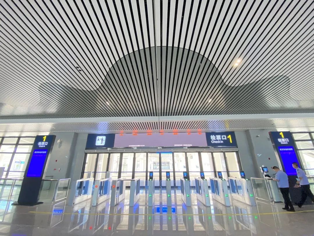 从外观上看,新建的站房外形设计象征凭借高新科技腾飞的武汉光谷,充满现代气息;内部装修结合地域文化特色,按照“智慧之光、科技之谷”的主题进行设计。在候车大厅,工作人员正在调试自动扶梯、进站闸机、安检仪等设施设备,为正式投用做最后准备。