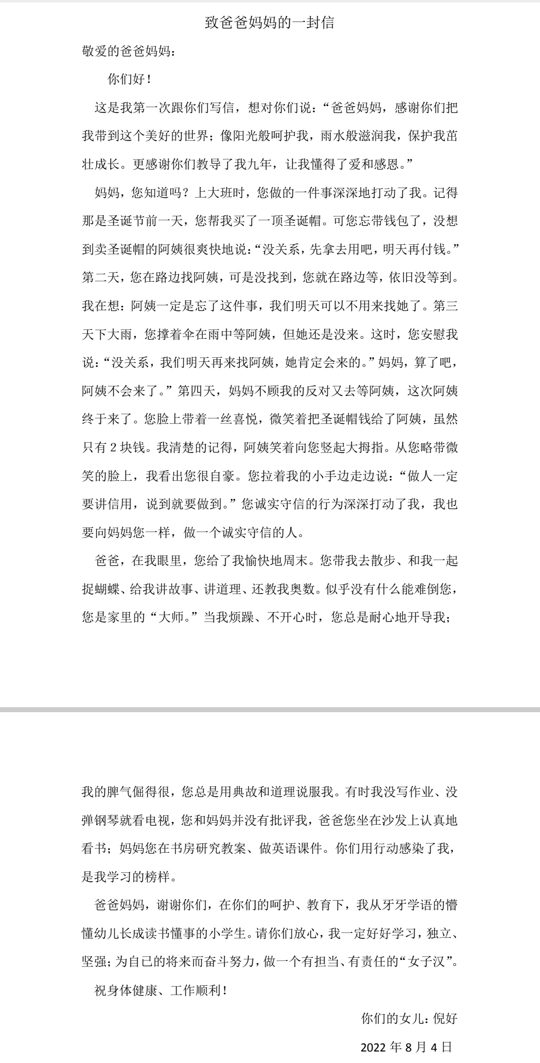 致爸爸妈妈的一封信
