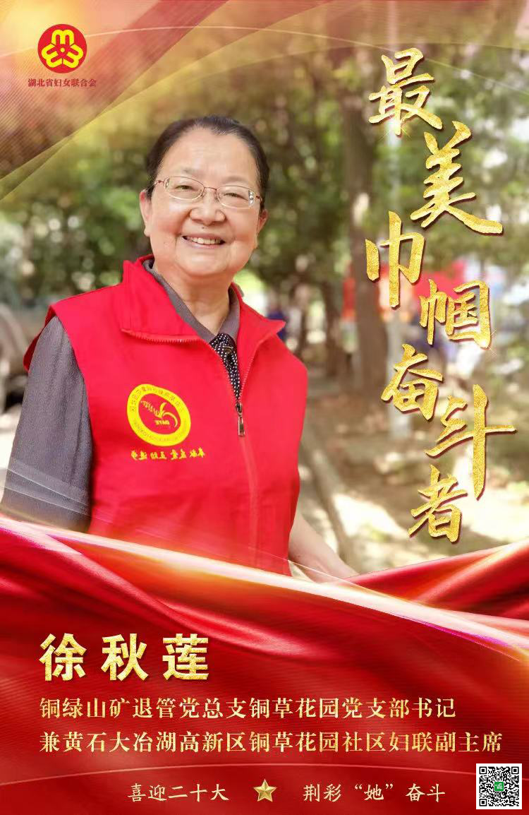 徐秋莲,现年71岁,是一名退休老党员。17年前,本已退休回家颐养天年的她,响应市委号召,牵头组建了一支由老党员、老干部、老职工为主的“徐大姐文明劝导队”。她虽然退休,但初心不改,依然为整个城市的文明创建发挥着余热;虽年过花甲,却穿上红马甲、戴上红帽子,在社区开展文明劝导、关爱帮扶、义务清扫等志愿服务活动。她的一举一动,都在致力于把小区营造成一个温馨幸福的港湾;她的一言一行,正潜移默化地感染着他人,让更多人踊跃参与到文明创建的大潮中来。