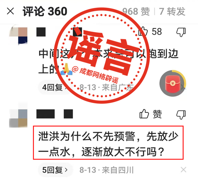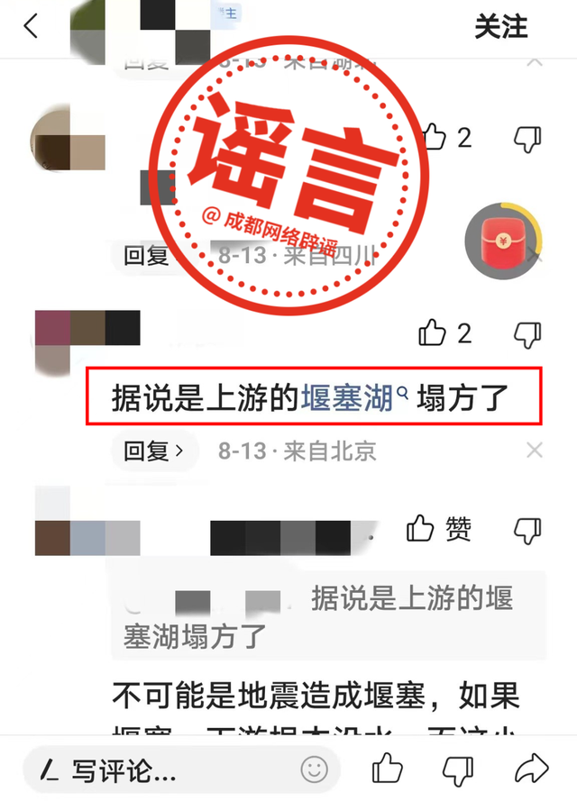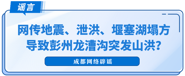 8月13日,成都彭州市龙漕沟突发山洪,造成游玩群众伤亡引全网关注,在大家为被困群众担心和祈祷的同时,却有个别网民不断散布“上游大坝发电站突然开闸放水引发山洪”“山洪是由地震形成的堰塞湖塌方导致”等言论博取眼球。