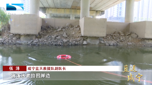 咸宁蓝天救援队副队长 伍洋:“整个岸边现在有救生圈和竹竿,像这种水域较远的情况下,我们可以拿着这个抛投绳,把抛投环拿在手上面,一只手我们拿着绳子,将救生圈用力地抛向水面,将落水者拉回岸边。”