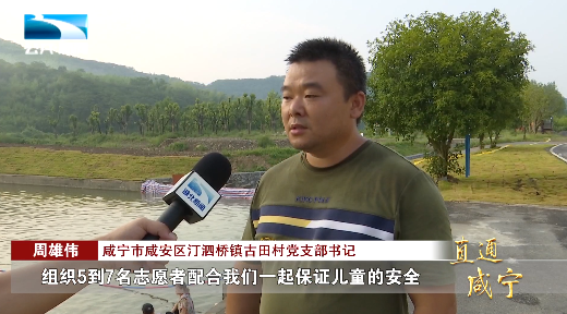 咸宁市咸安区汀泗桥镇古田村党支部书记 周雄伟:“组织5到7名志愿者配合我们一起保证儿童的安全,村里面备了40来个游泳圈,免费提供给小孩(玩耍用),备了一些降暑药和溺水的急救设施。”
