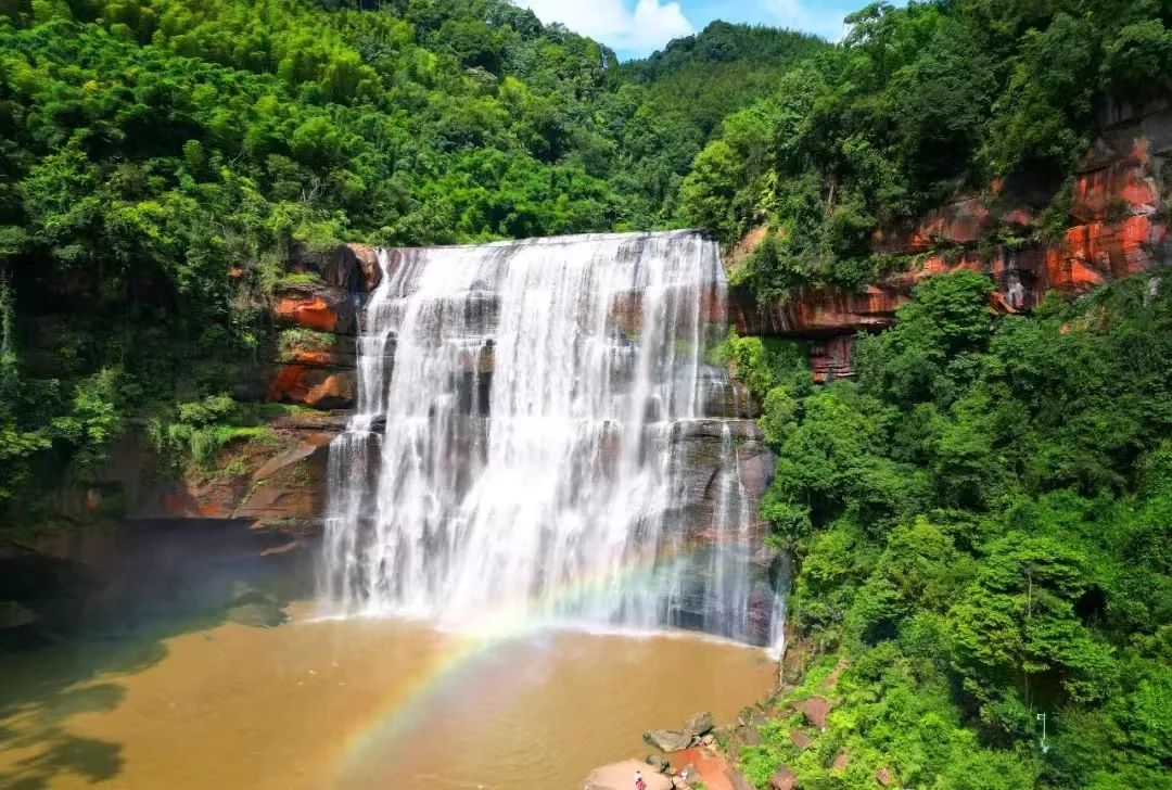 赤水丹霞旅游区位于贵州遵义的赤水市,是一家5A级旅游景区,包括四洞沟、杨家岩等景区。赤水大瀑布则是其重要组成部分,其位于赤水河支流风溪河上游,是国内丹霞地貌最大、长江流域最大的瀑布,该旅游区也是赤水丹霞世界自然遗产重要构成部分。