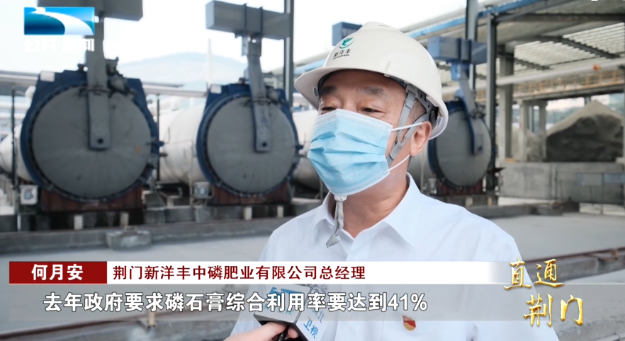 荆门新洋丰中磷肥业有限公司总经理 何月安:“去年政府要求磷石膏综合利用率要达到41%,我们达到了53%,那么就给予我们每吨1.5元的奖励,去年政府给我们奖励了将近40万元。”