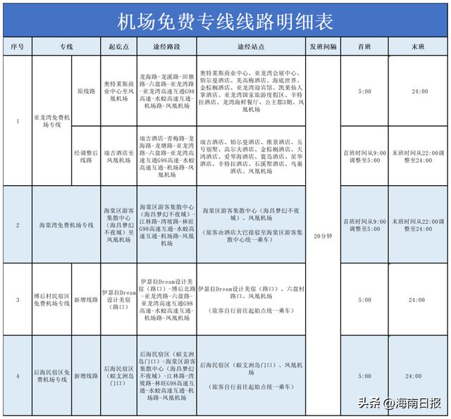 一、新增两条民宿区“博后村民宿区至三亚凤凰国际机场”“后海民宿区至三亚凤凰国际机场”的临时公共交通专线。