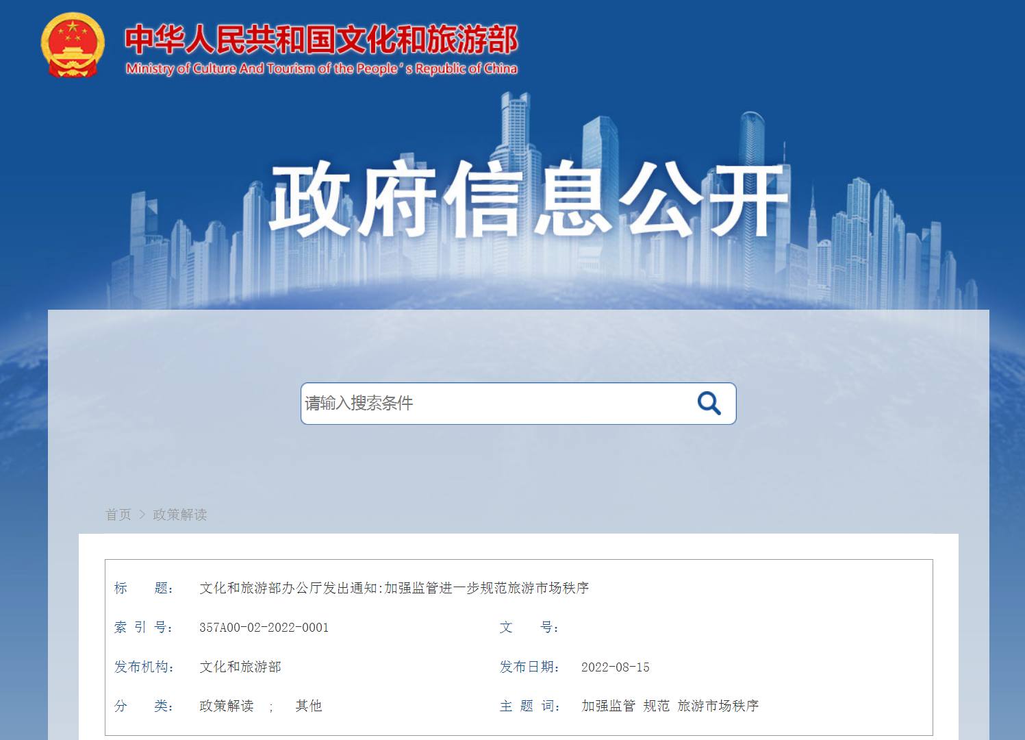 8月15日,文化和旅游部官方网站发布通知。