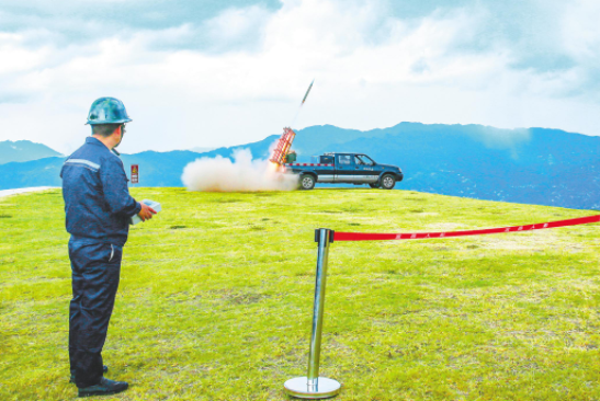 8月16日,流动式火箭车在秭归县进行人工增雨作业。(视界网 王罡 摄)