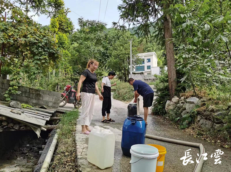 神农架林区松柏镇清泉村、龙沟村、盘水村因地势较高,水池内储水已经干枯,导致120户600多人无水可用。松柏镇采取为储水池注水和设置取水点方式,将生活用水送到村民“家门口”。当消防车刚刚到达供水点时,村民便拿着大大小小的水桶、水盆闻讯而来,一会儿临时“水站”便排起了长龙。