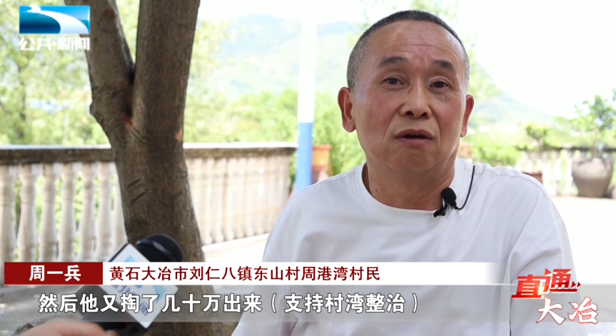 黄石大冶市刘仁八镇东山村周港湾村民 周一兵:“两套房子给别人了,然后他又掏了几十万出来(支持村湾整治),肯定我很感动,受他们的感染,几家老房子我也是第一个拆的。”