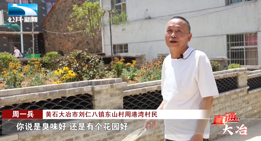 黄石大冶市刘仁八镇东山村周港湾村民 周一兵:“先开始这个小花园这一块是四家的旱厕,中心的位置臭气熏天,你说是臭味好,还是有个花园好。”