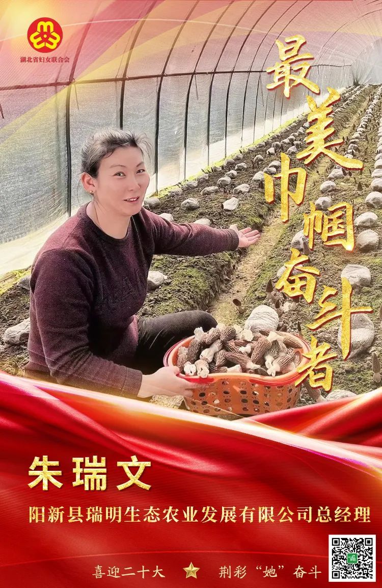从城市商界精英,到农村致富能手,依托阳新县黄颡口镇的资源优势,创办农业企业,创新“政府引导+企业经营+贫困户参与+市场化运作”的农业企业经营模式;她以“乡村振兴”为己任,十年如一日,植耕沃土,带领乡亲发展特色高效农业,形成了以瑞明牌富硒食用菌为特色,集食用菌种植及加工、水果药材套种、休闲观光、农副产品收购加工批发于一体的生态农业产业链,企业年产值500多万元,年纯收入200多万元,为贫困户提供就业岗位100多个。她,就是巾帼新农人、湖北省优秀农村实用人才、湖北省三八红旗手获得者——阳新县瑞明生态农业发展有限公司总经理朱瑞文。