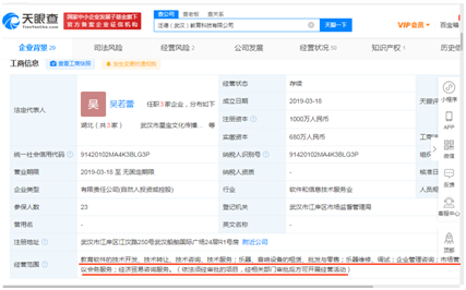 在天眼查上,记者查询到泛德(武汉)教育科技有限公司的经营范围只有:教育软件的技术开发、技术转让、技术咨询、技术服务;乐器、音响设备的租赁、批发与零售;乐器维修、调试等。确实没有教育培训这一项。