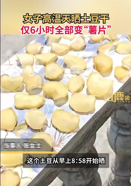 据陕西网白鹿视频微博消息,近日,重庆的陈女士一大早就切了很多土豆,码的整整齐齐打算晒成干,结果没想到平时需要晒两三天的土豆干,当天仅用6小时就变成了“薯片”。