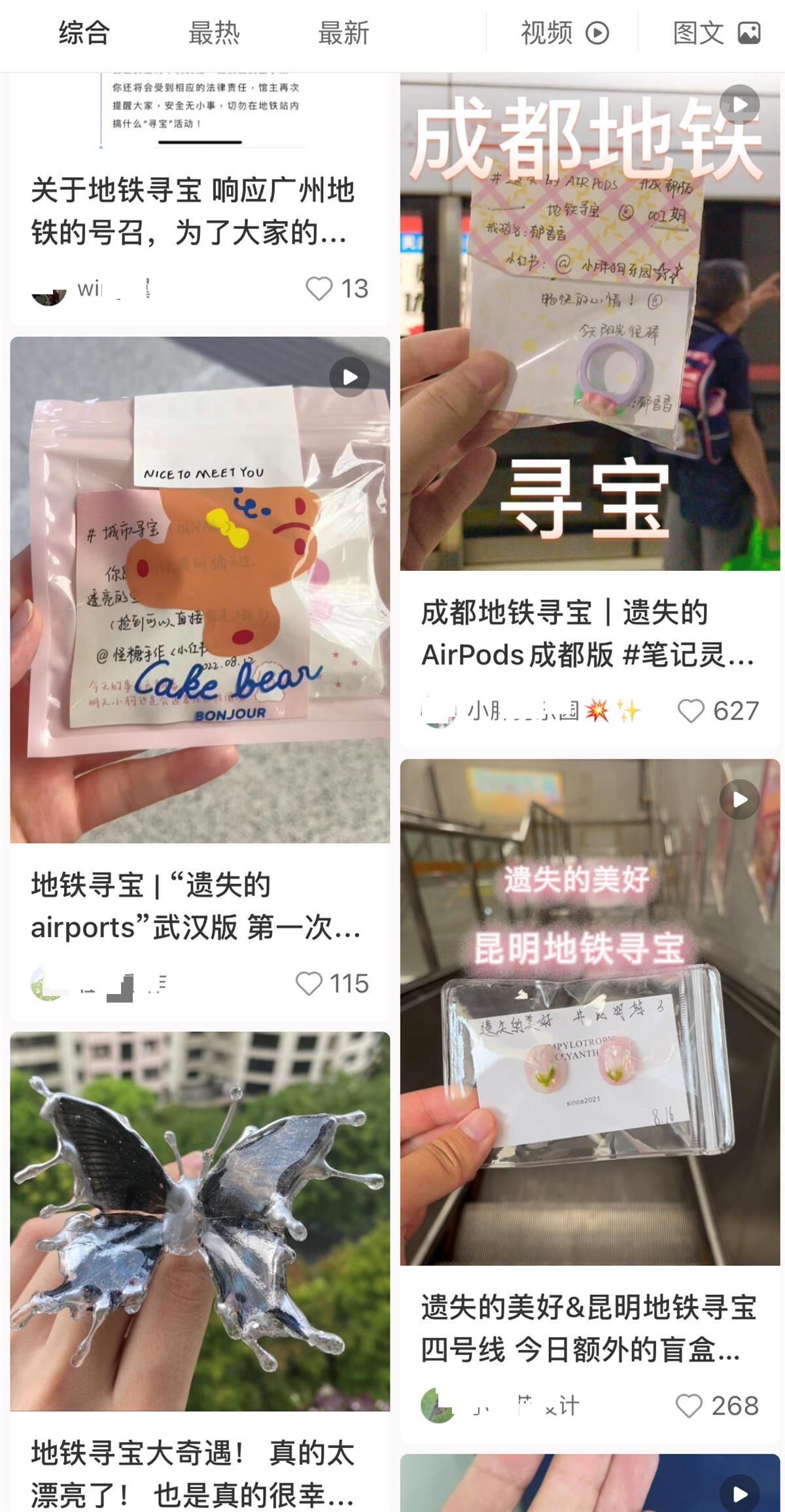 记者查阅发现,该活动的原型是由一位手工博主发起的“遗失的Airpods”活动,最早在北京掀起风潮。